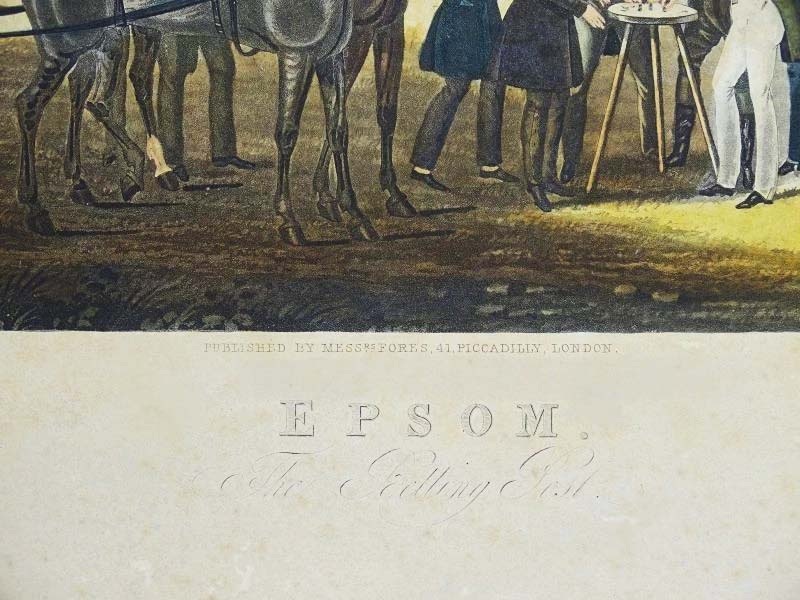 Прототипом представленной акватинты является картина Джеймса Полларда под названием “Epsom Races: The Betting Post“, в настояще время на ходится в собрании Йельского центра британского искусства в Нью-Хейвене (Yale Center for British Art; Accession number: YCBA/lido-TMS-42329).