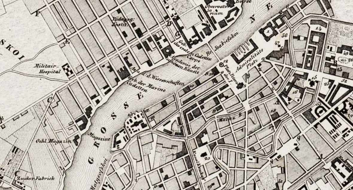 Редкий гравированный план столицы Российской империи – Санкт-Петербурга XIX века