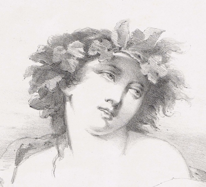 Прототипом для представленной литографии послужила картина «Bacchante», написанная Грёзом примерно в 1780 году. Местонахождение прототипа – художественный музей в центральной части Лондона “Собрание Уоллеса” (Wallace Collection; Accession number P407).