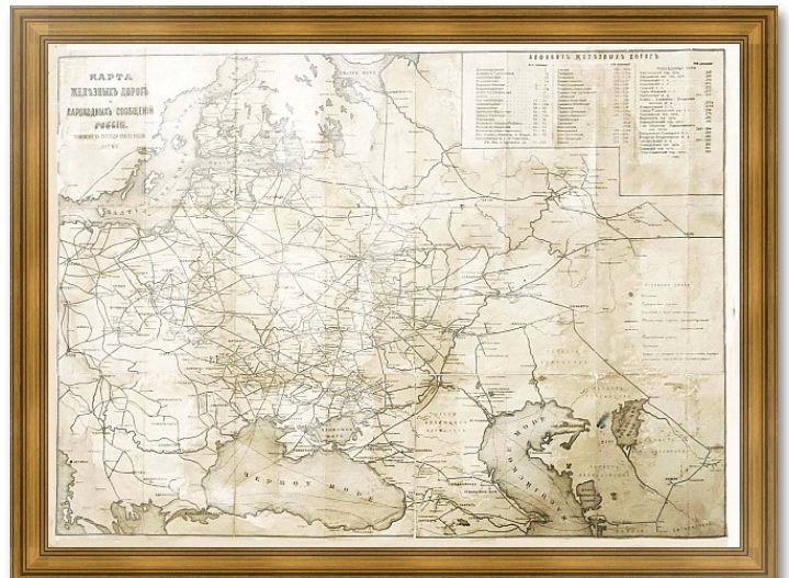 Карта железных дорог и водных сообщений. 1900г. Антикварный подарок железнодорожнику, логисту